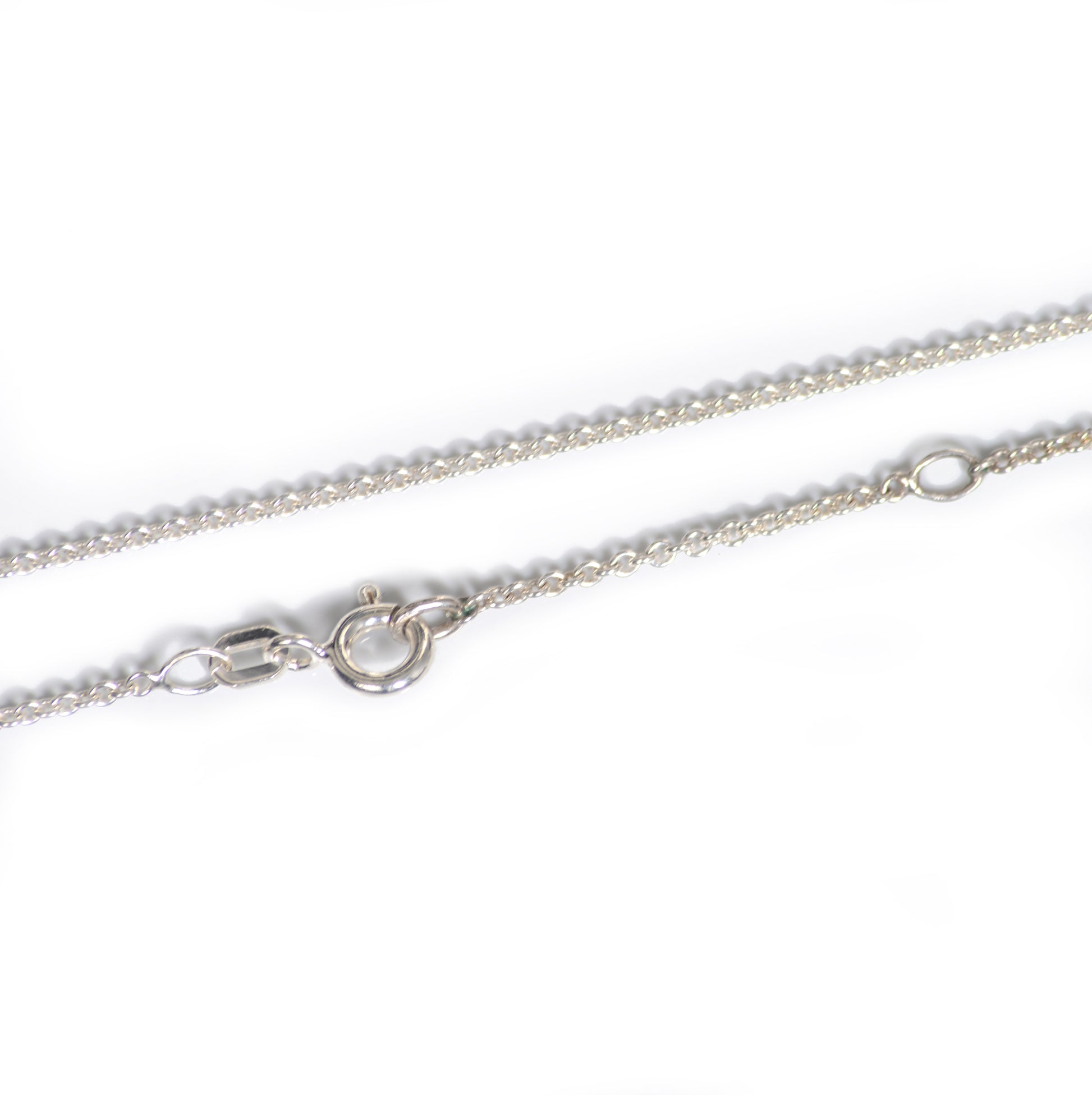 Die silberne 925er Halskette hat eine Länge von 45 cm mit Zwischenöse.